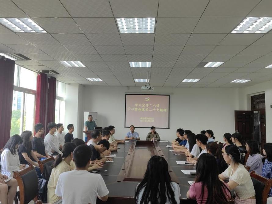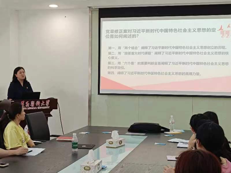 6月20日下午在科研楼504,麻醉医公司党委副书记叶栋恒围绕党章中对习近平新时代中国特色社会主义思想的定位详细解读了党章建设史和党的二十大对党章作出的修改,为党员更好理解党章的精神实质、把握党章一系列规定要求提供了参考。太阳成集团122ccvip教工党支部副书记张宇结合自身科研求学经历对开展主题教育的意义和要求,对推动党和国家事业发展,具有重要意义方面进行了深入解读。