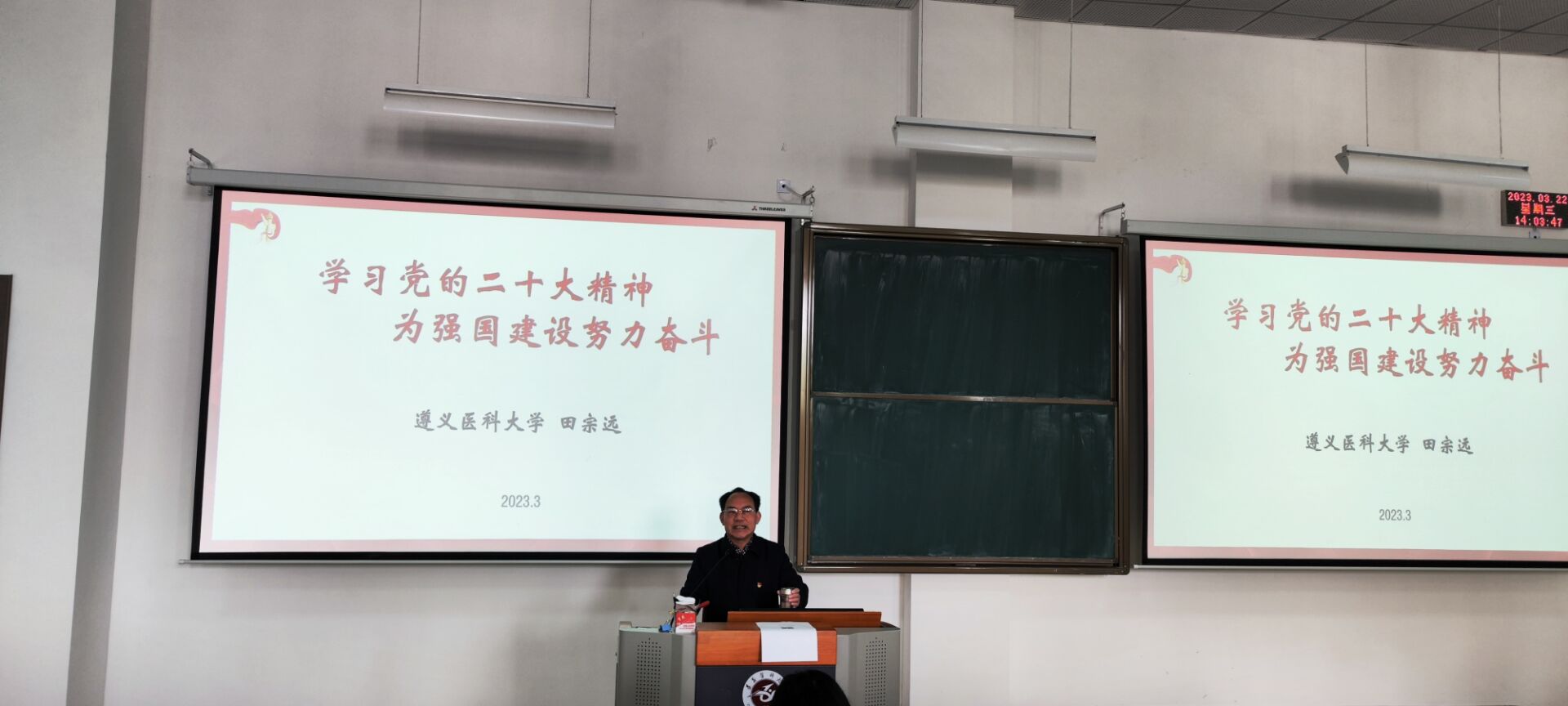 为深入学习宣传贯彻党的二十大精神,用党的初心使命感召青年学子,3月22日下午在第三教学楼十八阶梯,太阳成集团122ccvip邀请到公司关工委副主任田宗远教授为广大青年学子作了一场主题为“学习党的二十大精神,为强国建设努力奋斗”的宣讲报告。麻醉医公司党委副书记叶栋恒,员工第一党支部副书记韦锋及20级全体同学参加宣讲。