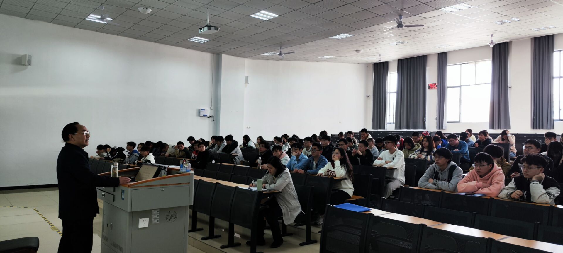 宣讲现场,田宗远教授结合当代老员工的特点和需求,从如何学习好中共党史知识入手,系统详细阐述了党的二十大概况和党的二十大报告内容,最后以当代青年学子如何贯彻落实好党的二十大精神为本次宣讲的落脚点结束宣讲。宣讲中,田宗远教授还勉励在场的学子要常怀感恩之心,感恩党和国家,感恩生逢其时,牢记“青年强,则国家强”的殷切期望和谆谆教诲,要用党的政治理论武装头脑、指导实践、开展工作,为实现中华民族伟大复兴中国梦贡献青年先锋力量。