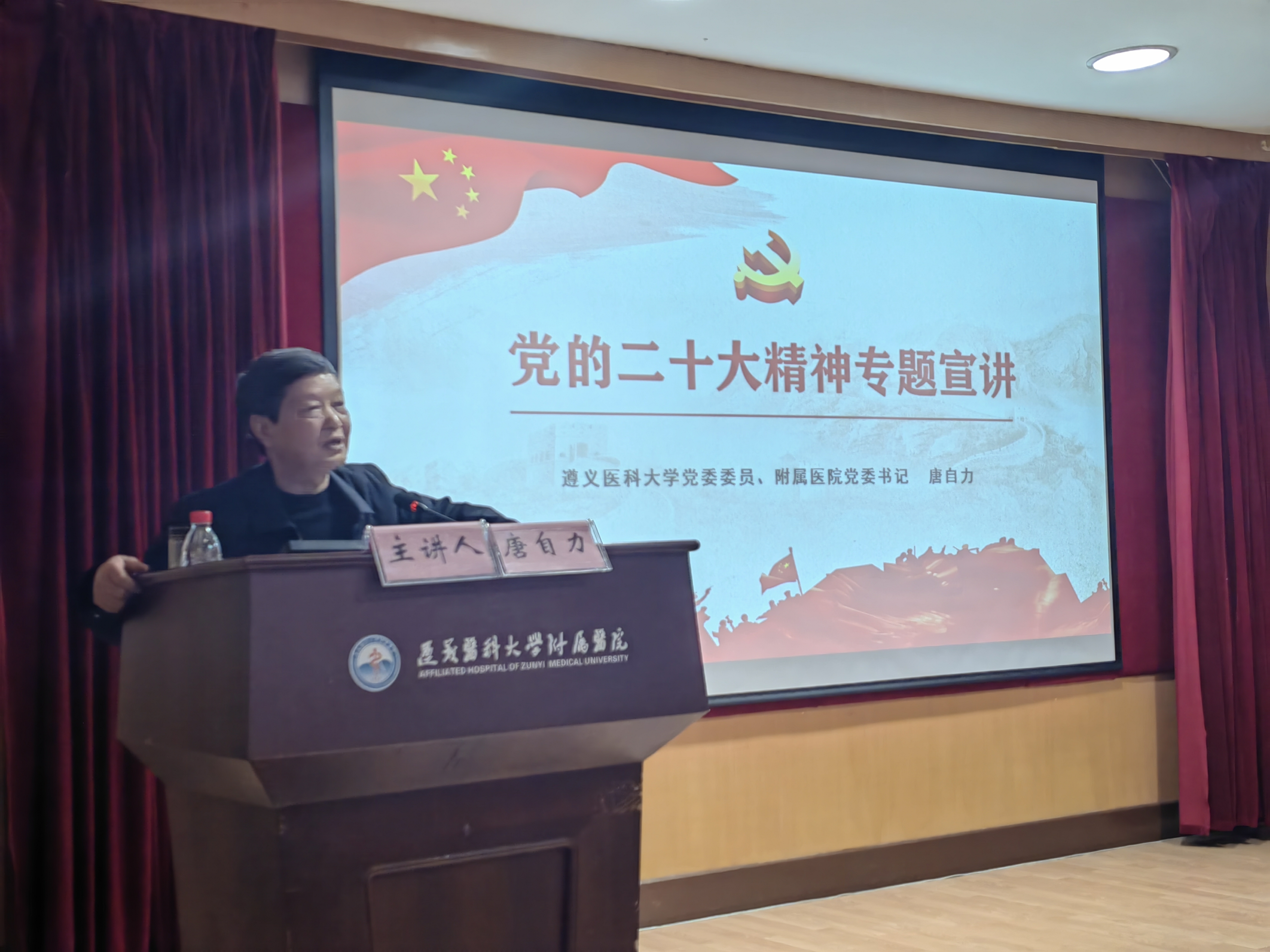 公司党委委员、附属医公司党委书记唐自力为公司师生专题宣讲党的二十大精神