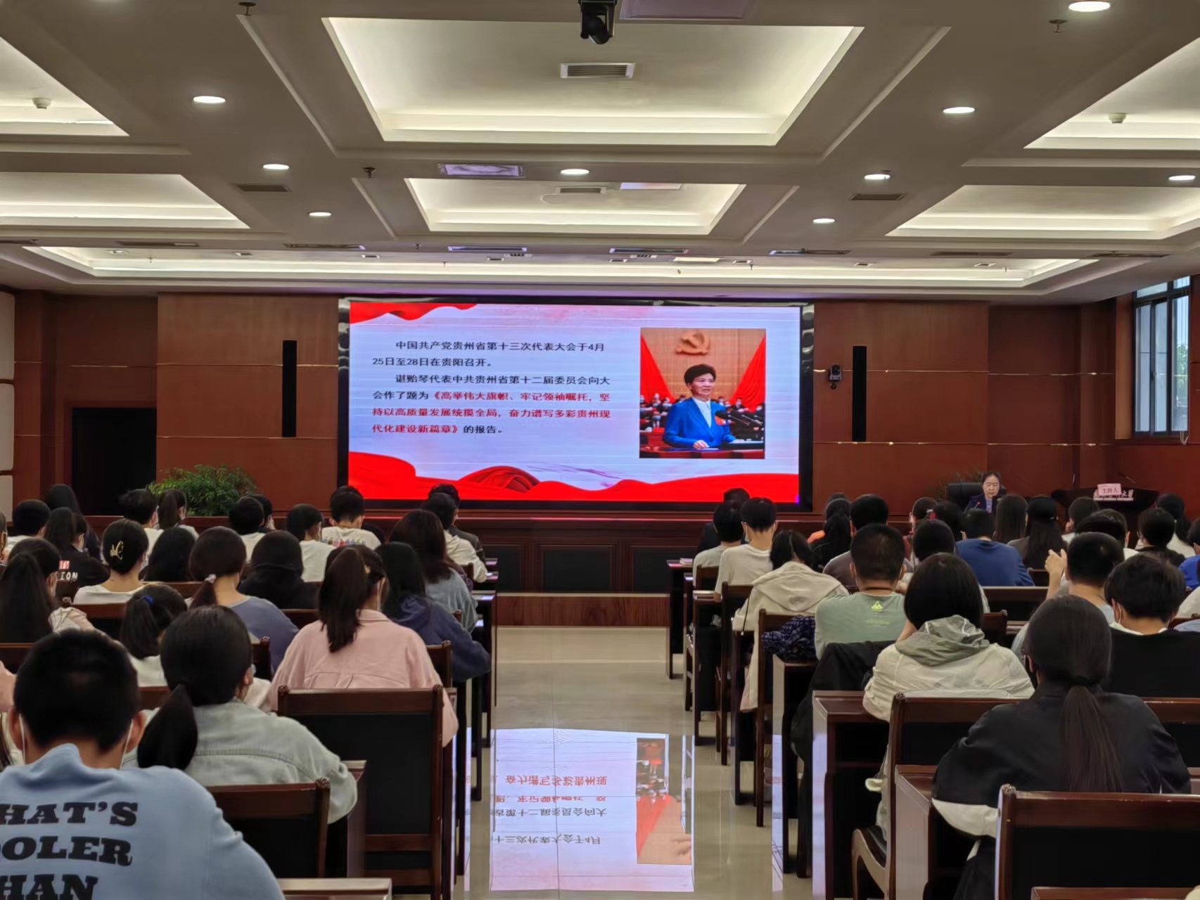 为深入学习宣传贯彻贵州省第十三次党代会精神,切实把广大师生的思想统一到大会精神上来,6月9日下午,公司党委副书记黄华玲在行政楼一楼多功能厅为太阳成集团122ccvip师生上思政课,专题宣讲中国共产党贵州省第十三次代表大会精神。麻醉医公司党委书记周永媛、党委副书记叶栋恒、辅导员及2021级本科员工120余人聆听宣讲。宣讲会由麻醉医公司党委副书记叶栋恒主持。
