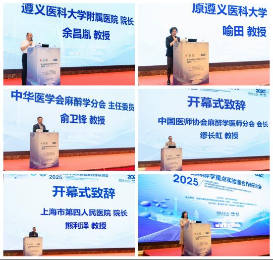 开幕式上致辞的嘉宾还有:上海交通大学麻醉医学教育部重点实验室主任、中华医学会麻醉学分会主任委员俞卫锋教授,上海市围术期应激与保护重点实验室主任、中国医师协会麻醉医师分会会长、复旦大学附属中山医院缪长虹教授,上海市麻醉与脑功能调控重点实验室主任、中华医学会麻醉学分会第十二届主任委员、同济大学附属上海市第四人民医院经理熊利泽教授。领导们的致辞高屋建瓴,充分肯定了重点实验室在推动麻醉基础研究、高质量团队建设及麻醉与脑科学深度融合中的关键作用,并呼吁加强协作、聚焦前沿、加快科研成果转化。