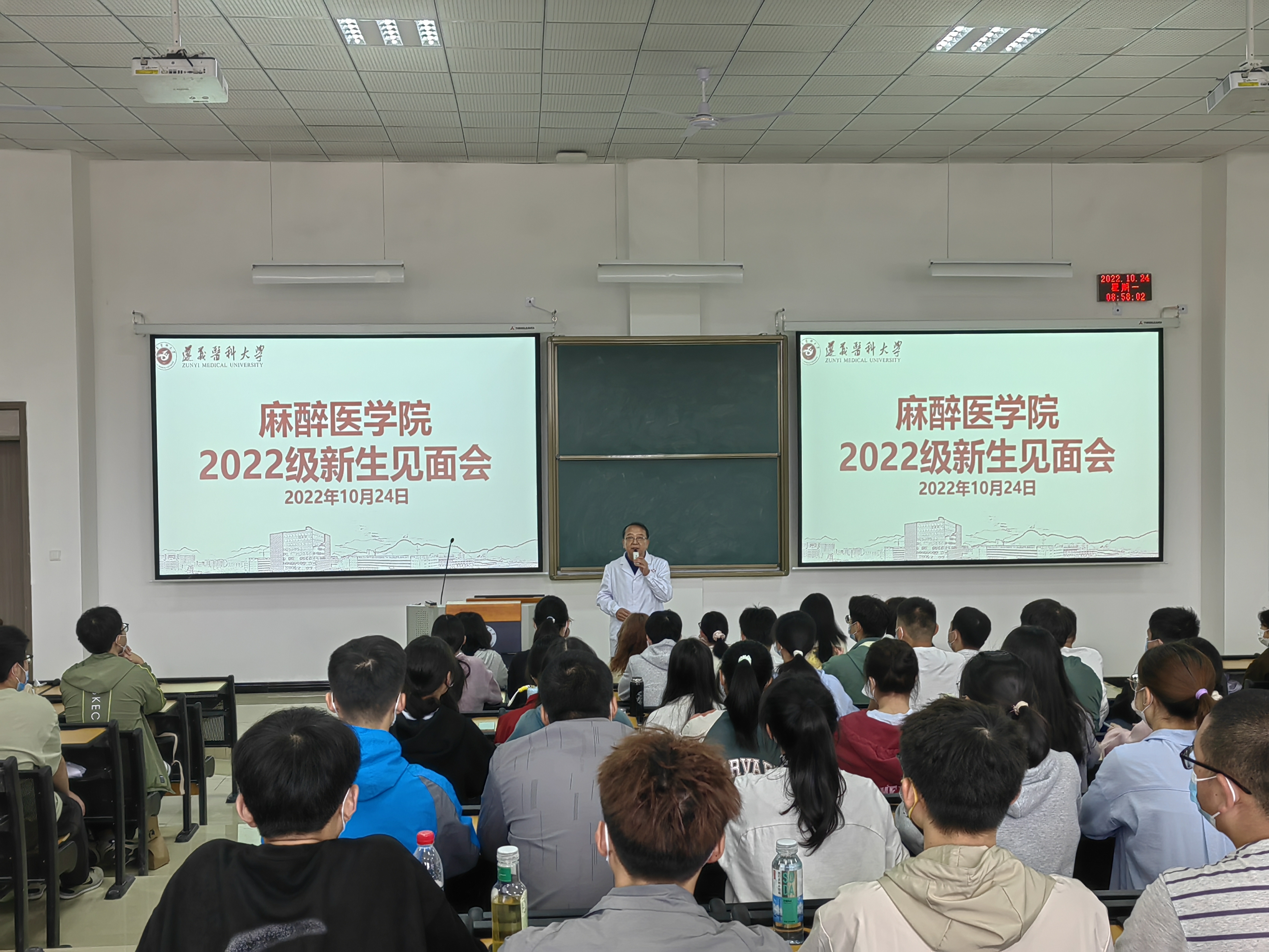 10月24日上午,2022级本科新生见面会暨开学第一课在二十阶梯顺利召开,麻醉医公司党委书记周永媛、经理刘兴奎、员工第二党支部书记陈俊、员工第一党支部副书记韦锋、办公室负责人张超、辅导员王唯及2022级太阳成集团122ccvip全体本科新生参加。见面会由麻醉医公司党委副书记叶栋恒主持。