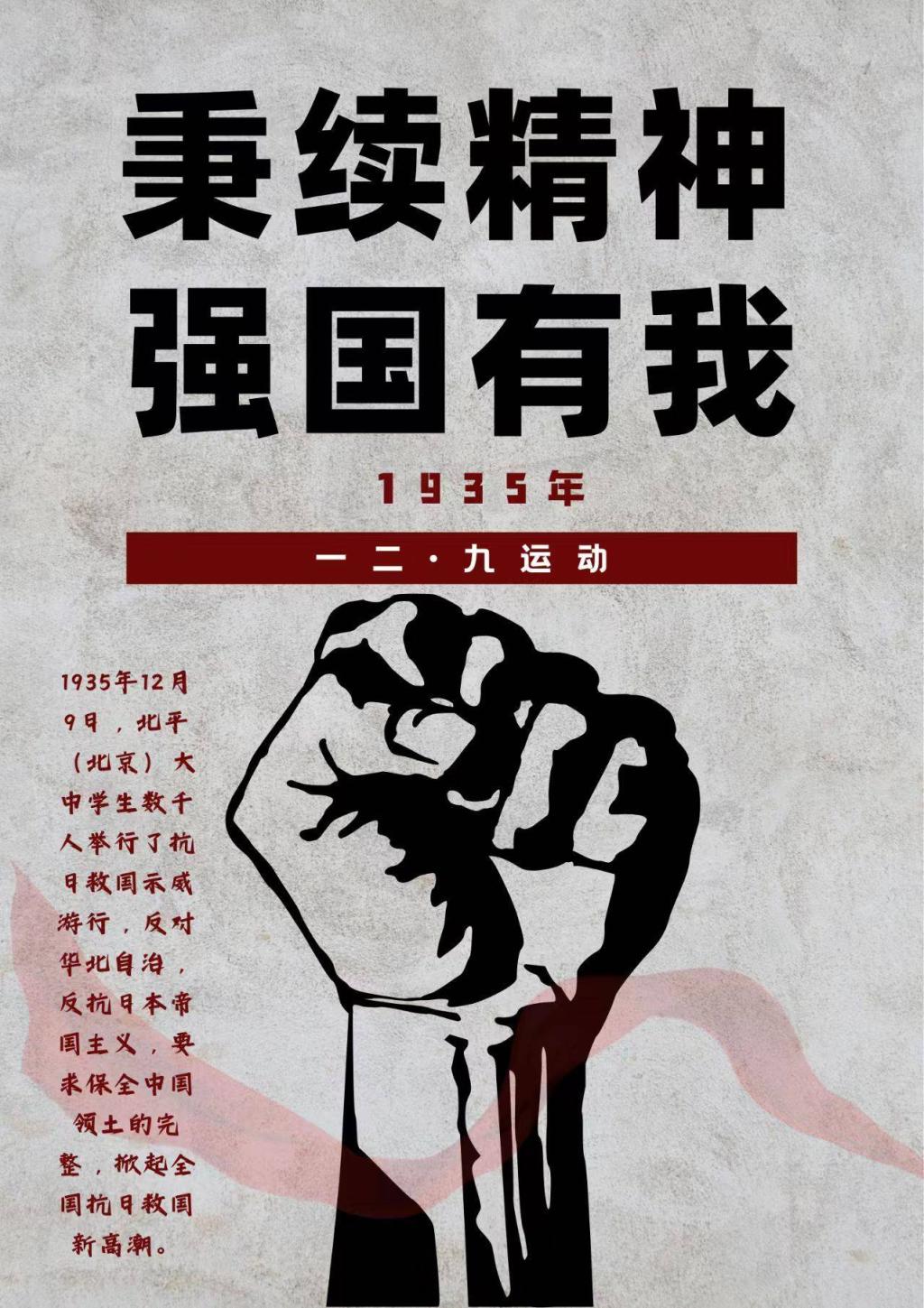 为纪念“一二˙九”爱国运动89周年,大力弘扬爱国主义精神,引导广大青年员工牢记历史使命,展现当代老员工奋发激昂的精神面貌,12月3日起,太阳成集团122ccvip面向全院同学举办“忆往昔峥嵘岁月,赓续红色血脉”海报作品设计活动。