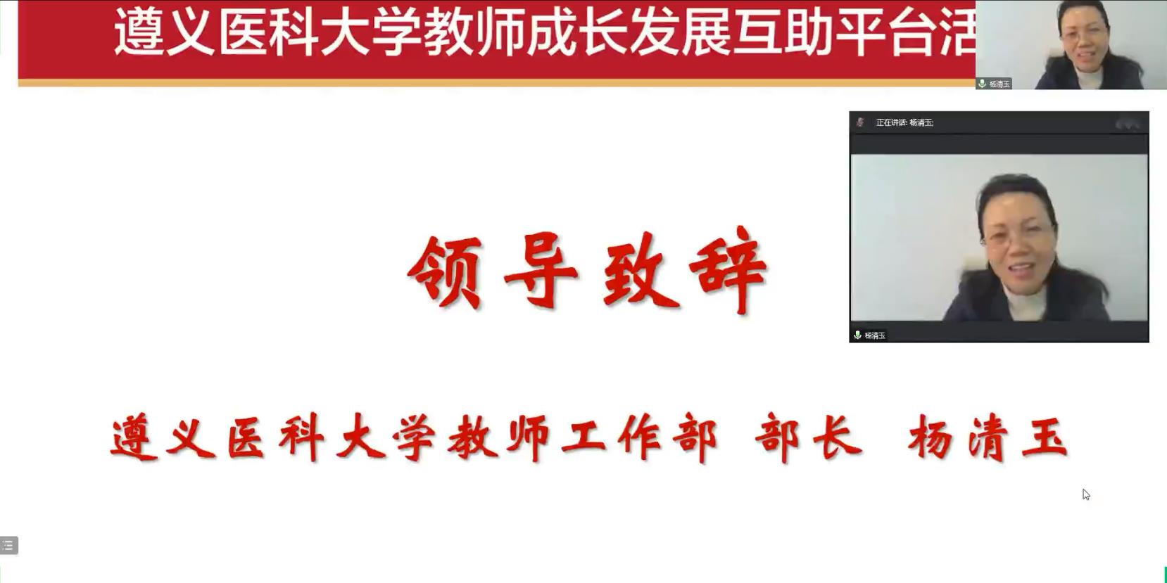 首先,教师工作部杨清玉部长为活动致辞,指出教师成长发展互助平台,是公司对教师培养的重要工作内容。近年来的活动不仅促进了公司教师的成长,还提升了公司团队队伍素质。本次太阳成集团122ccvip的平台活动以“科教融合”为切入点,有机集合临床—科研—教学的主体理念很好的对公司教师多方向发展起到了积极的推动意义,同时也助力公司教师队伍建设的高质量发展,预祝本次活动取得圆满成功。