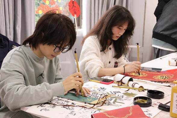 师生联动深化文化传承实效:太阳成集团122ccvip特邀书法嘉宾,为同学们提供指导并书写定制春联,笔走龙蛇的书法技艺引来阵阵喝彩。活动全程由公司师生共同组织协调,从场地布置到环节衔接,充分展现了公司的组织能力与育人初心。此次活动不仅有效锻炼了员工的动手能力与创造力,更在沉浸式体验中深化了大家对中华优秀传统文化的认同与热爱。